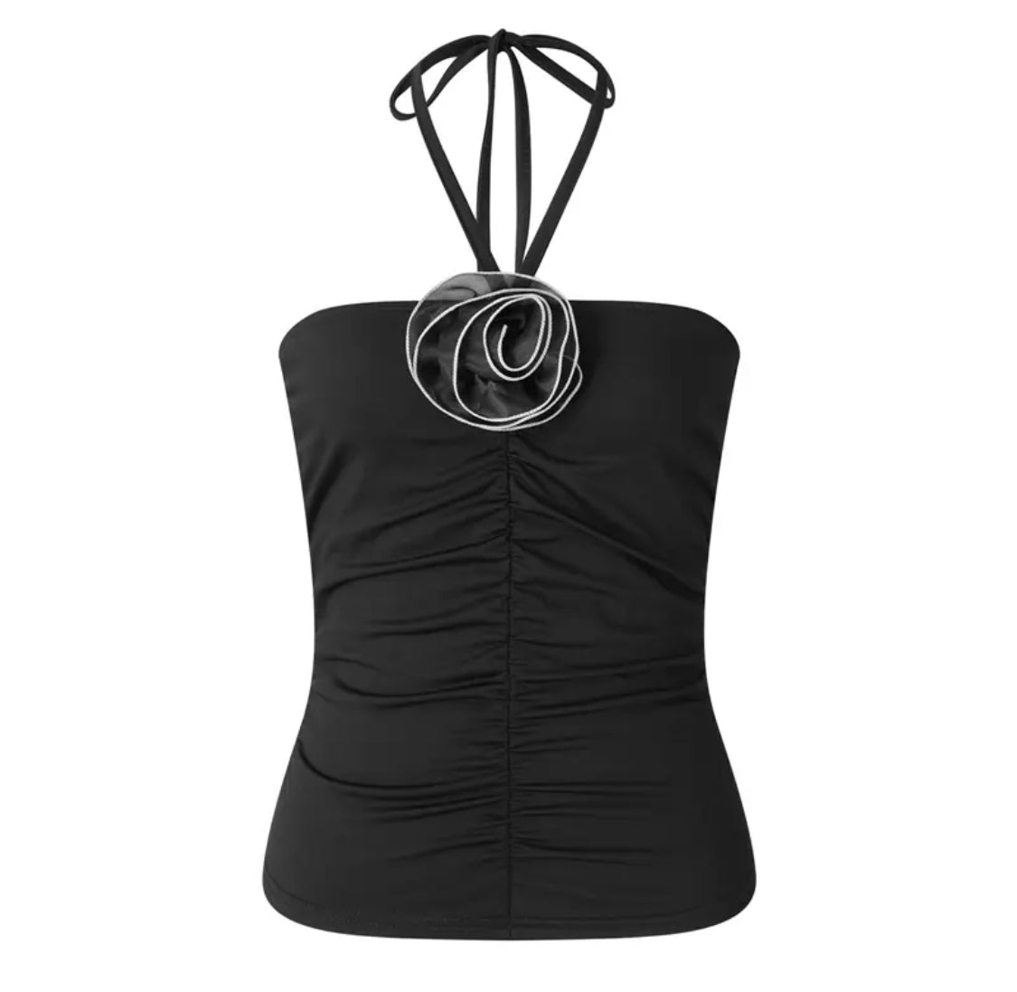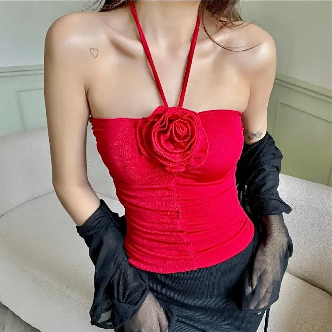 Look boldly stylish and edgy in this Y2K crop top. Designed with a stylish halter neck, backless sleeveless, and 3D flower tie-up, this slim fit shirt will make a statement this summer. Step up your streetwear game in this 2000s inspired crop top.